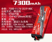 三圈霸道ERC 锂电池7300 11.1V 3S1P 90C XT60 越野车大脚RC车模
