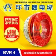 广州珠江电线电缆环市牌 国标BVR4平方多股软铜线 家用电线空调线