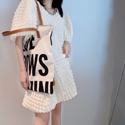 Q395追美买手店2021夏季新款设计师女装立体泡泡袖短袖连衣裙子