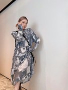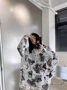 C637追美买手店2021夏季新款抽象水墨印花宽松衬衣长袖衬衫防晒女