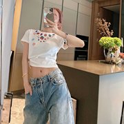 修身短款印花小众设计感纯棉短袖t恤女夏mskin6买手店新款U155