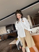 C755 追美买手店2021早秋季新款皮牌贴标白色长袖衬衫女衬衣