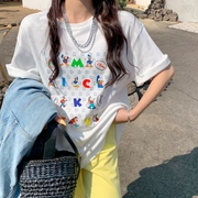 T382K 追美买手店设计师女装2021夏季新款宽松纯棉印花T恤女上衣