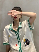T222追美小众设计集合买手店2021夏新款五角星刺绣镂空钉珠t恤女