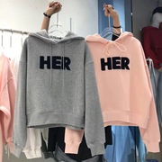 追美实体店同款2020春秋新款韩版宽松刺绣卫衣女加绒连帽套头