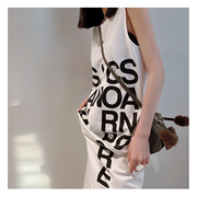 T127小众设计女装买手店2021早春夏新款字母长款背心连衣裙子女