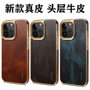 新款真皮外壳适用iPhone14手机保护壳15苹果13高级感小众高端牛皮14Pro全包边2防摔13Promax皮套保护套矽胶软男女