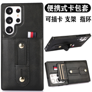 新款卡包适用三星S23ultra手机保护壳带支架戒指S22可装证件门禁照片插卡套S21全包防摔note10+创意卡槽N20卡槽软