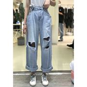 Kabodo巴布牛仔韩版百搭高腰牛仔裤女2020春夏破洞裤子宽松阔腿裤