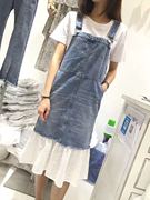 NIMILL 2017夏款韩版休闲时尚宽松拼接牛仔背带鱼尾裙连衣裙 女