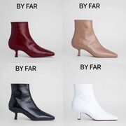 新款By far短靴女靴短筒尖头靴chic高跟及踝靴羊皮小猫跟侧拉链