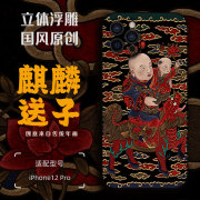 年画款 适用于iPhone12pro手机壳 高档皮纹浮雕 新款中国风