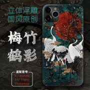 亦闳适用于苹果11手机壳古风仙鹤11pro复古浮雕防摔情侣xsmax全包