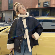 MAJE KARA羊羔毛拼接羽绒服女2022冬季新款高级感炸街小个子外套