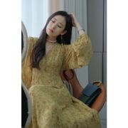 MAJE KARA 去有风的地方刘亦菲同款黄色碎花收腰显瘦茶歇裙洋装