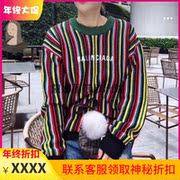 Balenciaga/巴黎世家 秋冬彩虹条纹圆领毛衣男女领口破坏针织衫