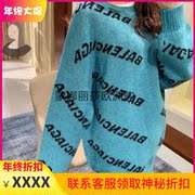Balenciaga/巴黎世家 秋冬新款全身字母logo湖蓝色毛衣男女针织衫