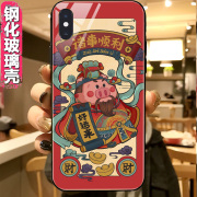 玻璃手机壳iPhone 6 6s 7 8 plus XS max Xr 11pro猪财神招财福气