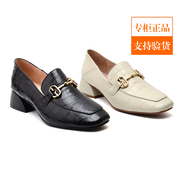 瑞贝卡女鞋2021春季专柜正品牛皮中粗跟休闲石头纹乐福鞋11JW0212