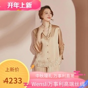 Wensli万事利2021真丝丝绸桑蚕丝睡衣套装女和锦25姆米素绉缎礼盒