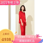 万事利真丝丝绸睡衣女桑蚕丝2021实体店新款轩窗红色香槟色礼盒装