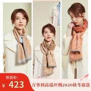 Wensli万事利真丝长巾桑蚕丝围巾2020秋冬新款花之秘境并行轨道