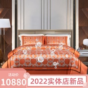 万事利正品2022实体店真丝床品四件套橙色骑士床单枕套被套22姆米