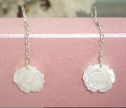 特色斯文 精美 韩式 珍珠贝耳环 贝壳耳勾 玫瑰花 925纯银耳环