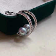 M家时尚双C新款纯银耳钉日本蓝灰真多麻耳坠正圆akoya海水珍珠耳