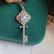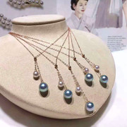 礼物女心菲钥匙日本真多麻akoya吊坠银灰蓝正圆海水珍珠项坠纯银