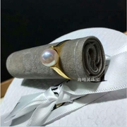 新款18K金简约款高品质日本AKOYA白透粉海水珍珠戒指极光正圆无瑕