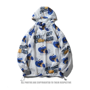 个性卡通图案透气速干皮肤防晒衣男宽松潮牌防紫外线连帽风衣外套