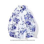 春秋季港风蓝玫瑰印花长袖衬衫男女潮牌宽松痞帅休闲薄款衬衣外套