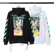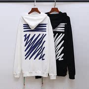秋冬季潮牌OFFWHITE条纹宽松OW连帽套头衫卫衣男女情侣装薄款外套