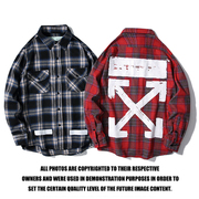秋季潮牌OFFWHITE警戒线休闲格子长袖衬衫男女情侣装百搭工装衣服