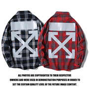 潮牌offwhite基础警戒线宽松休闲韩版潮流格子长袖衬衫外套男女OW