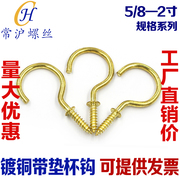镀铜带垫9字杯钩挂衣钩羊眼灯钩木板专用自攻木螺丝钉挂钩1/2-2寸