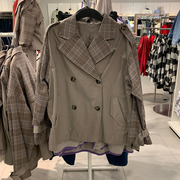 潮牌炸街女装2021春装新款双排扣格纹拼色宽松休闲外套潮0967858