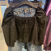 H家 潮牌女装2021春夏新款上衣方领泡泡袖复古修身衬衫潮0973868