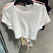 H家 潮牌女装夏装新款上衣修身百搭个性罗纹高腰短袖T恤 0839194