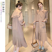欧洲站2019秋冬装新款时尚宽松长袖毛衣针织连衣裙名媛小香风套装