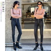 欧洲站2020年新款时尚百搭烟灰色高腰牛仔裤女修身显瘦小脚裤子潮