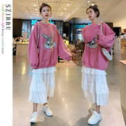 欧洲站女装2020春装新款时尚小香风宽松显瘦拼接中长款卫衣连衣裙