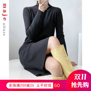 掌柜推荐~maje allure法式显瘦黑色高领打底长袖针织赫本风连衣裙