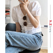 韩国SZirru2020新款夏季时尚百搭白色雪纺衫女短袖小香风上衣女装