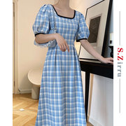 韩国SZirru女装2020新款法式复古格子气质显瘦雪纺小香风连衣裙夏