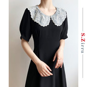 韩国SZIRRU女春装2020新款收腰显瘦黑色性感蕾丝气质小香风连衣裙