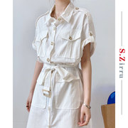 韩国SZirru女装2020新款复古气质收腰显瘦赫本风白色棉麻连衣裙夏
