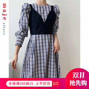 高颜值好货!maje allure 法式复古长袖格子气质赫本风连衣裙套装