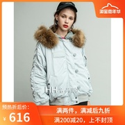 MOUSSY代购 19秋冬新大毛领前长后短手臂贴布羽绒服028CSE30-0000
